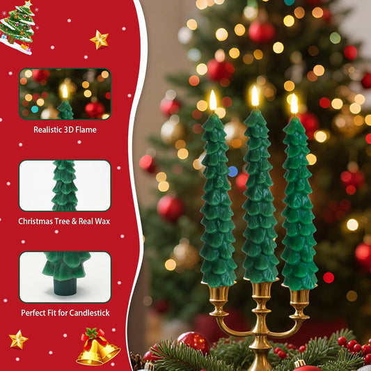 LED Green Tree Taper Candle Stick Set