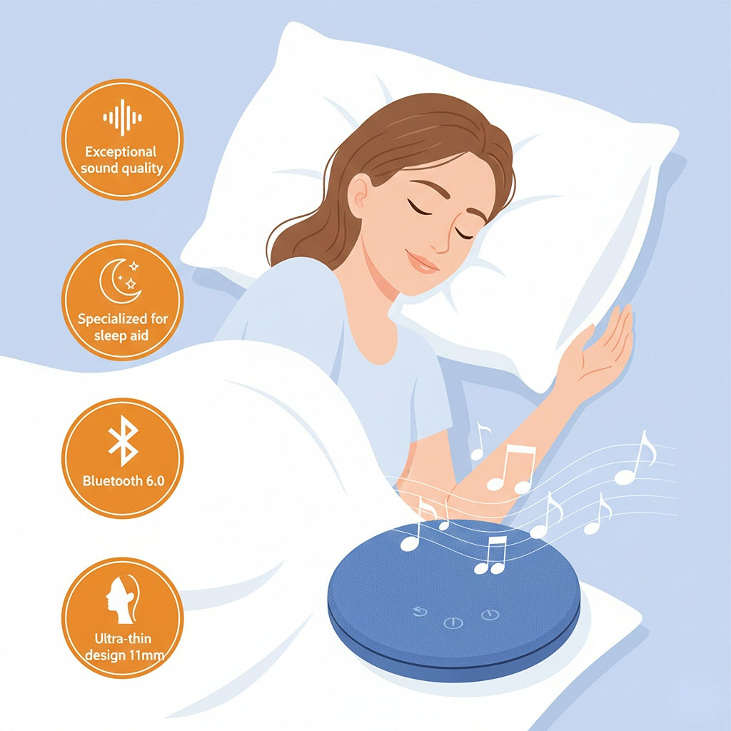 Still struggling with painful earbuds or bulky headphones that fall off when you turn? Perfect for side sleepers, our headphone-free technology delivers crystal-clear audio without any ear pressure. No more tangled wires or sore ears in the morning—just pure, unrestricted comfort all night long.