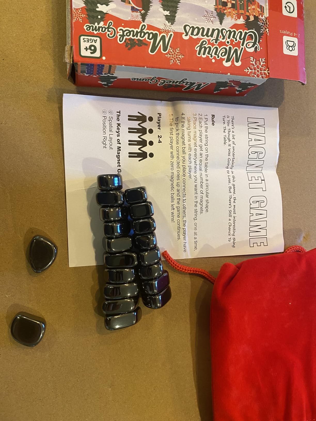 This is a game for 2 or more players. During the game, you win when you have no magnets left. The goal of the game is to
