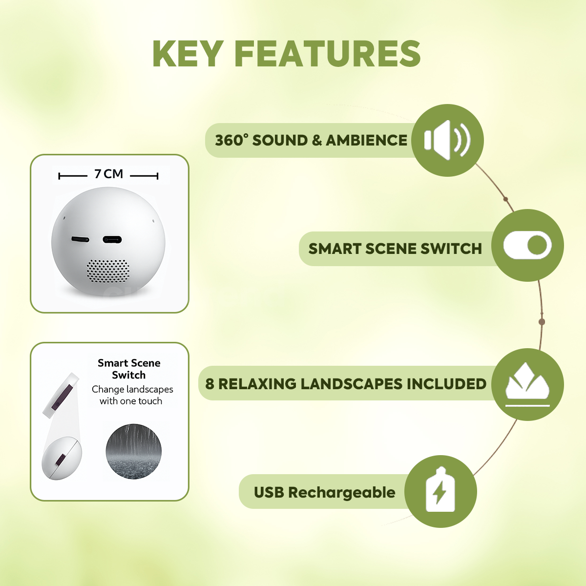 8 Sleep Modes & Customizable Ambience, No Apps RequiredContent: