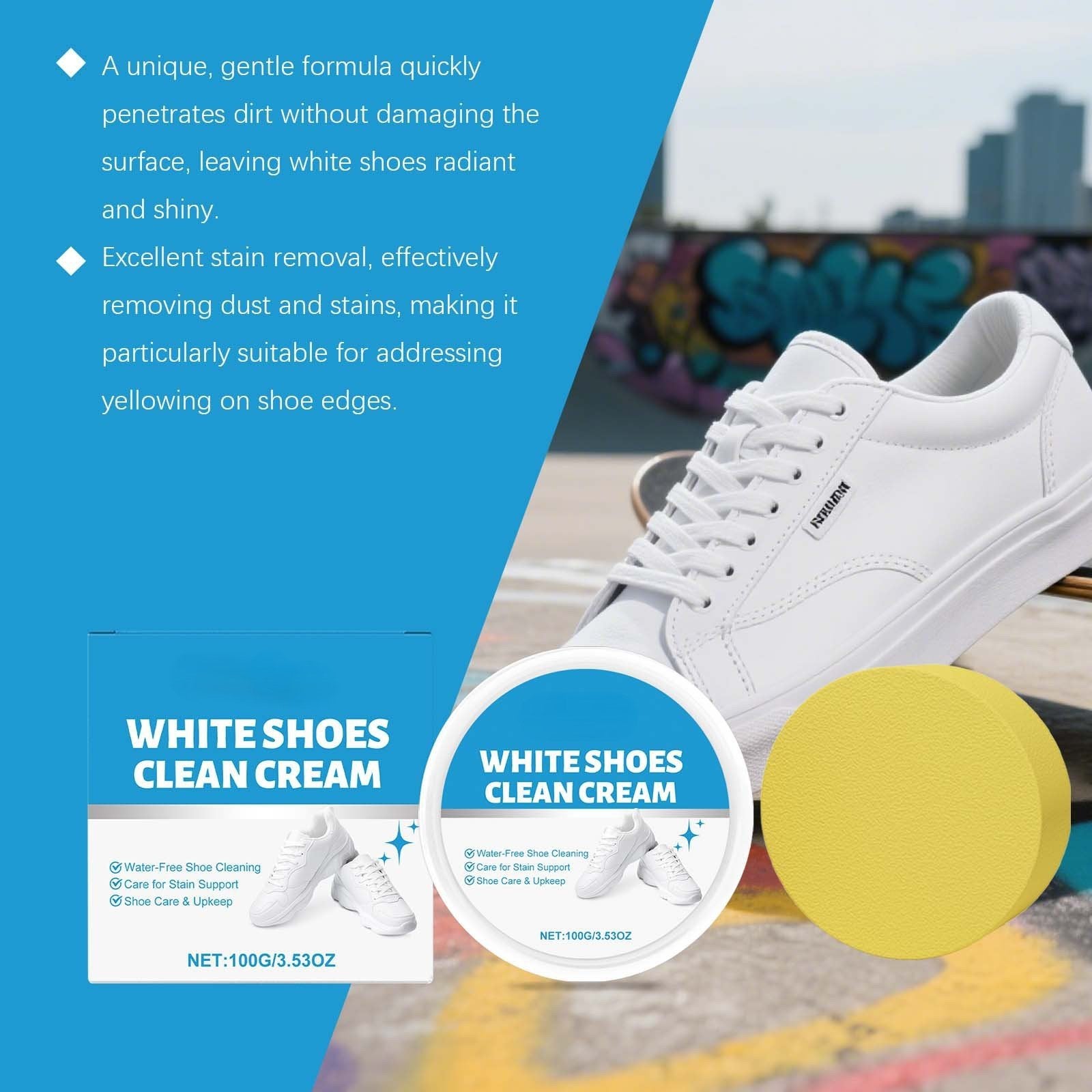 This solid cleaning cream restores shoes to a like-new look without water — whitening agents and neutral active ingredients penetrate deep to lift stubborn stains and brighten white surfaces quickly.