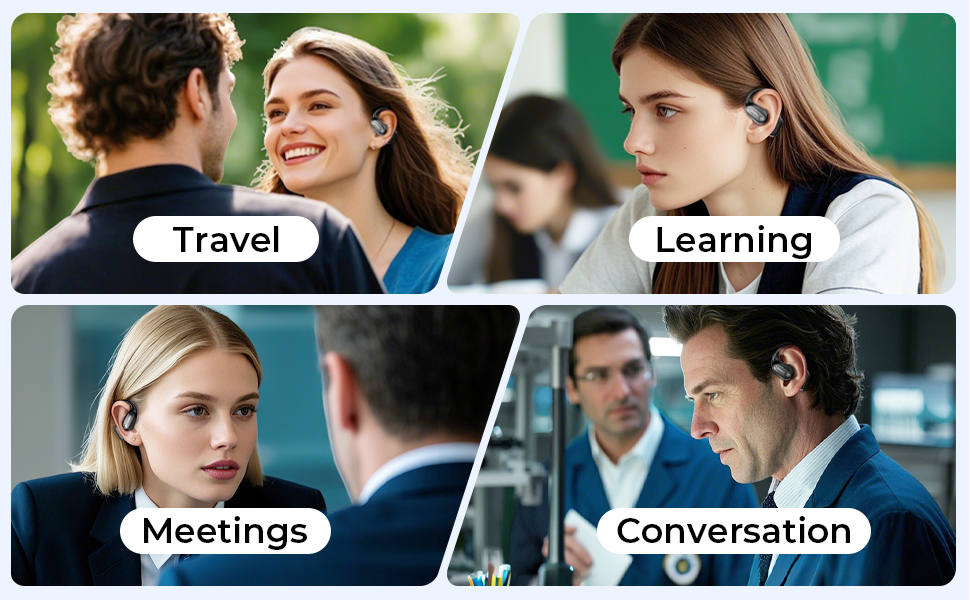 The AI Translation Earbuds feature an open-ear design for lasting comfort without pressure, keeping you aware of your surroundings while walking, running, or commuting, with real-time translating.