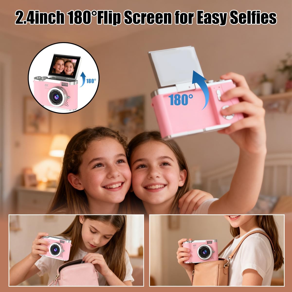 Capture holiday moments in crisp 1080P video and high-resolution photos. The 180° flip screen and 8X digital zoom make it easy to frame selfies, family gatherings, and festive scenes anytime, anywhere.