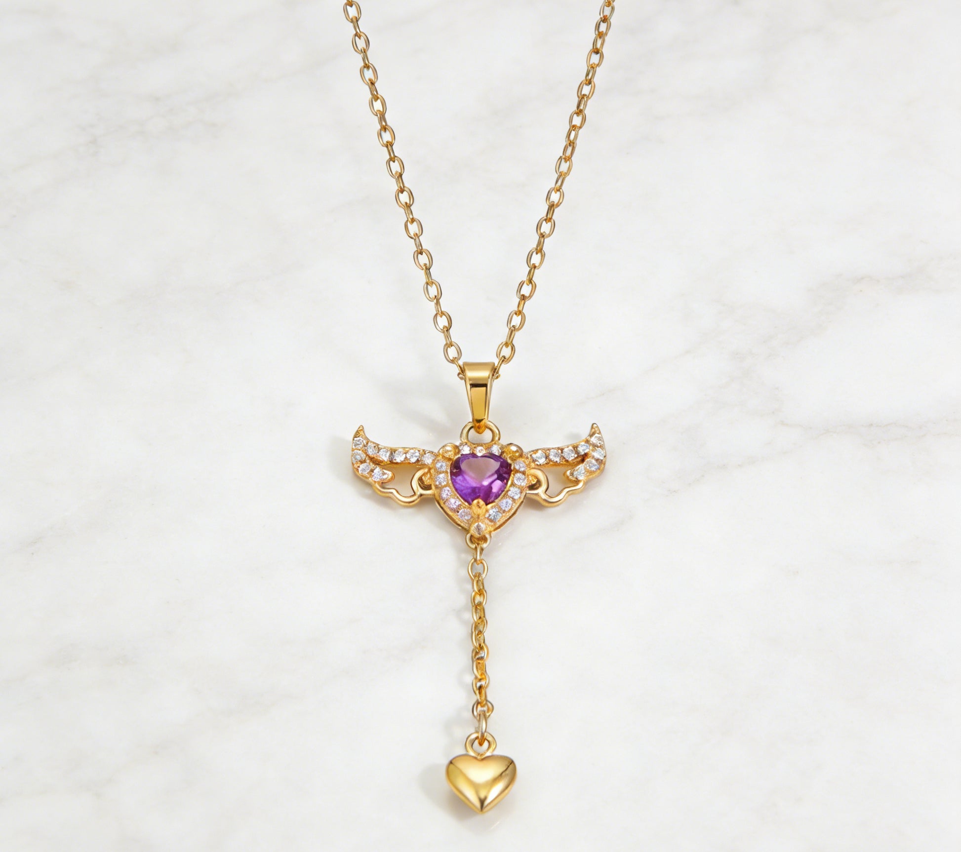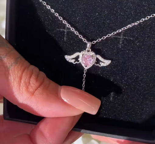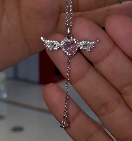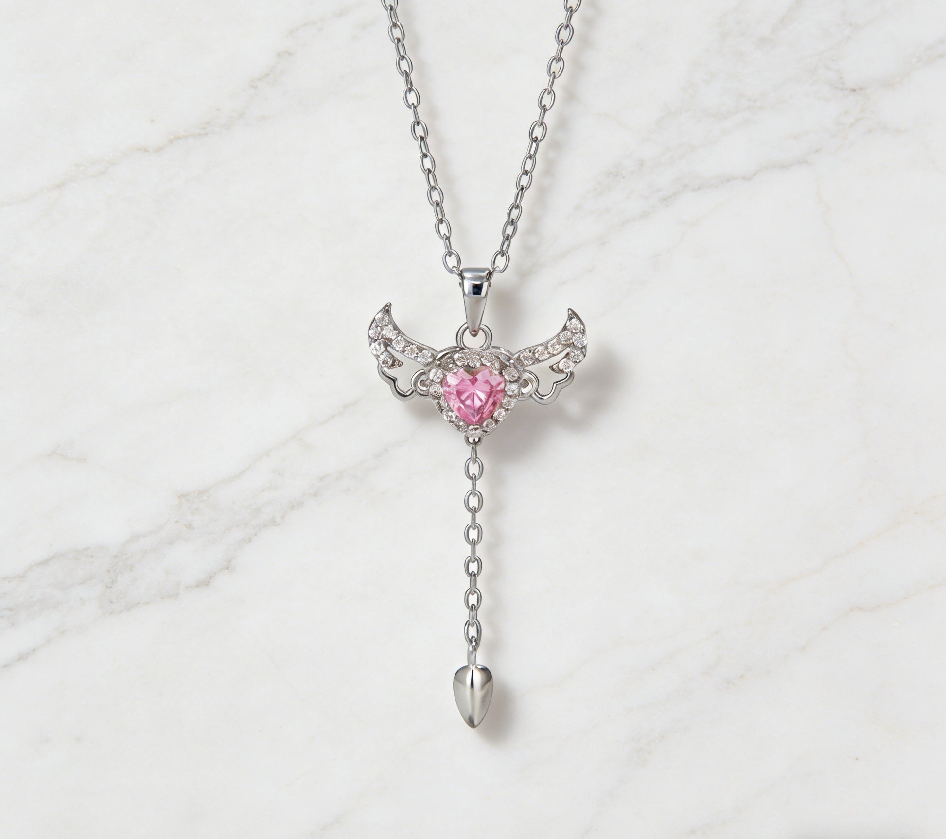 A romantic ingenuity hidden in the details. Gently pull the heart pendant below, and the exquisite angel wings on both sides will flutter slowly, like wings awakened by love. Every flutter has its own gentle rhythm. Under the sun, the outline of the wings and the sparkling pink heart zircon complement each other, vivid and healing, making the moment of wearing a exclusive romantic ritual.