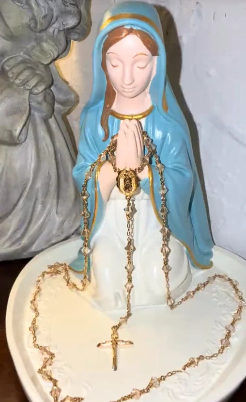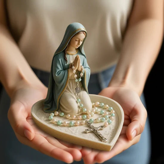 This exquisite Virgin Mary statue rosary holder combines sacred artistry with functional design. The meticulously crafted sculpture embodies divine grace, serving as both a spiritual centerpiece and practical jewelry organizer for devout Catholics.
