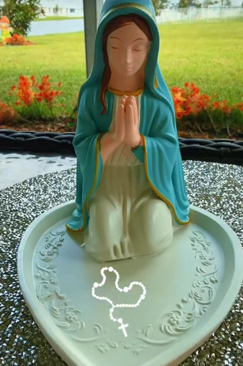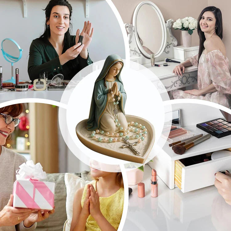 Ideal for home shrines, prayer corners, or church displays, this Marian sculpture radiates peaceful devotion. The stable base also functions as a jewelry organizer, blending practical use with spiritual significance.